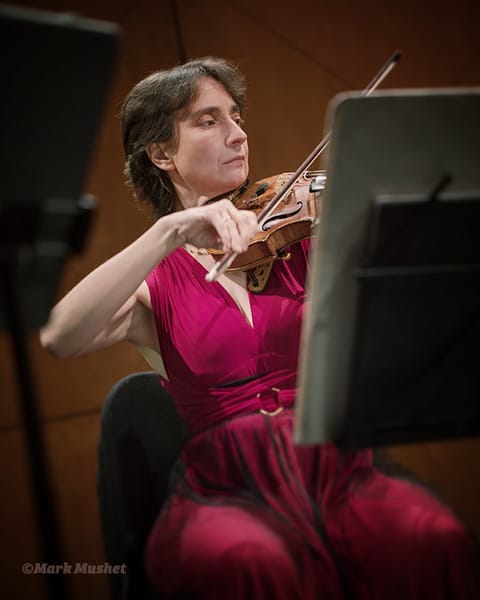 Violinists Vera Martínez Mehner and Abel Tomàs, violist Cristina Cordero, and cellist Arnau Tomàs switched to their “Modern” bows to play the Canadian premiere of Spanish/American composer Elisenda Fábregas’ “Fiery Earth” (2024). This was contemporary music with heart plus tonal clusters that allowed our audience to grasp the feeling and movement in the sound intended by the composer. This new music was given such a persuasive interpretation by the quartet that the applause it garnered was very enthusiastic, a surprise from our audience, many of whom felt it was the highlight of the concert. The Quartet used the same bows to play Schubert’s towering String Quartet No.15 in G Major, Opus 161 D887, lending a keen edge to their tone, as well as both delicacy and power in good measure. People were on their feet at the end and the ovation brought an encore – and another change of bows, this time to play the first set of J.S. Bach’s “The Art of the Fugue” with “Baroque” bows and a distinctively different sound. This change contributed to a fascinating musical experience.